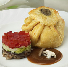 Our top pick of the Summer 2006 Fancy Food Show goes to frozen hors d’oeuvre specialist Kabobs. Order whatever you need (including this main course-size Chicken Wellington). You’ll never call a caterer again!