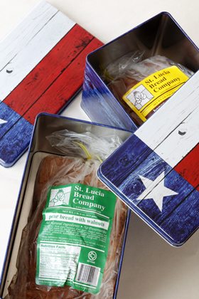 The fruit breads travel well and have a longer shelf life than a regular loaf. So, in handsome red, white and blue gift tins, St. Lucia has been shipping a “Little Taste of Texas” to anyone, anywhere, who’s in need of a moist slice of breakfast bread.