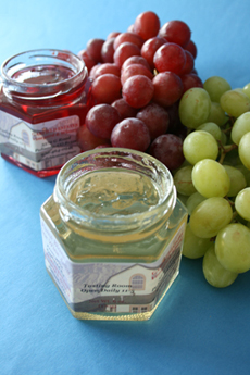 Jelly is simply sweetened and jelled fruit juice, a clear, bright product. It is generally made by cooking fruit juice and sugar with pectin as a jelling agent and lemon juice as an acid, to maintain a consistent texture. Jelly is firm and will hold its shape (it “shakes”). Generally, jelly contains no pieces of fruit, although specialty jellies, like pepper jelly, may include pieces of jalapeño or other chile pepper. A good wine jelly is made with a concentration of real wine; the better the wine and the more wine in the jelly, the better the wine jelly. A top wine jelly will taste like a glass of wine in jelly form. Read our review of Colorado Mountain wine jelly (photo at right).