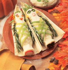 mummified-mashed-potatoesPlay with your food before you eat it—with these customizable mashed potato mummies. Photo courtesy of the Idaho Potato Commission.
