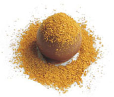 Vosges Haut Chocolat’s Naga truffle is ganache enrobed in milk chocolate and rolled in sweet curry powder. Below, Vosges’ Budapest truffle is rolled in sweet Hungarian paprika.  |