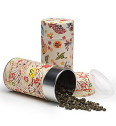 A washi-covered tin of jasmine tea “pearls.” Photo courtesy Mighty Leaf tea. |