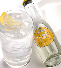 Tonic water is a carbonated soft drink flavored with quinine. It is called a “tonic” because of the medicinal effects of the quinine. It has become the fashion over the last few years for better bars to use better tonic water, seeking out specialty and artisan brands in small bottles. Some bars have imported Schweppes’ Indian Tonic Water from the U.K.: European tonic waters have a higher content of quinine and are sweetened with cane sugar, as opposed to the pariah high-fructose corn syrup (HFCS). Tonic water and other mixers from smaller bottles generally have a higher level of carbonation than the sodas that shoot from the bartender’s “gun.” One entrepreneur in New York City has created Q tonic water, using organic agave nectar as the sweetener (a four-pack costs $10). Like its competitors, Q Tonic boasts all-natural ingredients, including quinine extracted from “hand-picked Peruvian Andes tree bark.” For others who just want to avoid the HFCS, Whole Foods Markets sells tonic water in cans under its 365 house brand. Some bartenders brew their own, from cinchona bark or powder (the specialty brands use expensive isolated quinine, extracted from the bark).