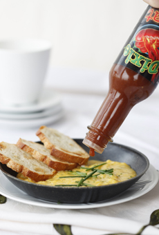 Gourmet hot sauce garnishes scrambled eggs. All photography by Katharine Pollak | THE NIBBLE.