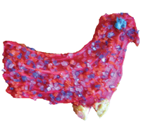 The rooster-shaped cookie cutter based on an art piece by R.A. Miller. Both cookies shown frosted with optional royal icing. |