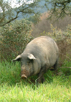 An Iberian pig, perhaps the variety brought to America by Hernando de Soto. Photo courtesy Cinco Jotas. |