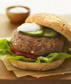 Enjoy the bold Greek flavors in these easy and healthful turkey burgers (photo at top of page). The yogurt topping is delicious with grilled fish, too.
