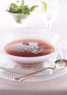 Hot and sour soup refers to a number of different Asian soups—from Cambodia, China, Thailand and Vietnam—that contain ingredients that give the soup both hot (spicy) and sour flavors. The most familiar in the U.S., from the Chinese Szechuan cuisine, is typically made hot (spicy) with red chiles or white pepper, and sour with vinegar. Other ingredients can include bamboo shoots, day lily buds, egg, a variety of mushrooms (button, cloud ear and wood ear), sesame oil, soy sauce, strips of pork and tofu. The soup is thickened with cornstarch or tapioca. |