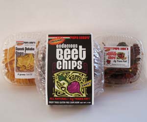 Beet Chips, Roasted Red Pepper Chips, Spicy Hot Poblano Chips, Sweet Potato Chips
