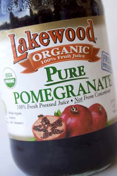This juice, which is made from California-grown Wonderfuls, is thin and light, with lots of sediment, and has a vegetal smell. When we first tried it, the juice tasted very bitter, even a bit plastic, but after being open a few days, mellowed significantly. Unlike the other members of this category, it’s not a particularly sweet juice (it tastes quite unlike the reconstituted Knudsen concentrate). Once it has had a chance to breathe, it makes a nice juice for drinking.