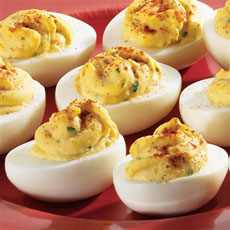Stuffed eggs were a popular dish as far back as the Roman Empire. There are many different recipes for stuffed eggs, but the term “deviled eggs” originated in 18th-century England. “Deviled” refers to the use of hot spices or condiments in a recipe—paprika, mustard, hot sauce, horseradish, chiles, etc. |