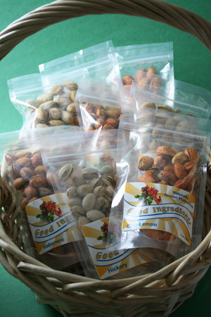 CAPSULE REPORT: Good Ingredients is a California company that grows and roasts pistachio nuts in the family orchard in Santa Barbara County, California, and seasons them with natural flavors. The nuts are delicious grab & go snacks in resealable bags, and are heart-healthy, high-protein gifts. The line is certified kosher by OK.
