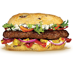 The Mona LisaFirst France; now on to Italy! Enjoy this artistic Italian twist on the American cheeseburger, complete with Gorgonzola cheese, Sicilian olives, pancetta and olive ciabatta bread.