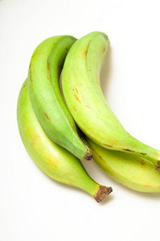 Though plantains are most often sold green, if you live near a Latino or African market, you might also find them in red, yellow or nearly black. If green, you can place them in a paper bag on your countertop for a couple of days to ripen more quickly—just as with bananas.