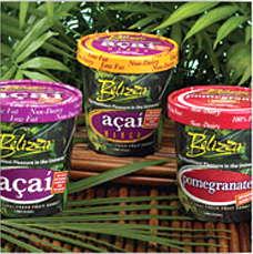 Six sorbets—three flavors of açaí (Açaí, Açaí Banana, Açaí Mango) and three flavors of pomegranate (Pomegranate, Pomegranate Açaí,* Pomegranate Raspberry)—show that (a) açaí can be delicious and (b) pomegranate can have intense, wonderful flavor.
