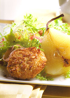 Page 2: Poached Pears On Frisée With Macadamia Crusted Buttermilk Blue