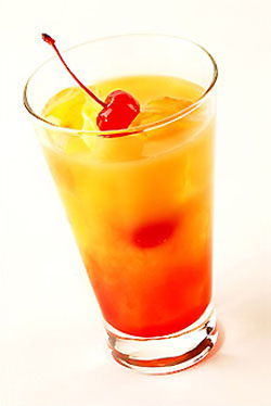 This colorful drink is a British take on the Tequila Sunrise, traditionally made with tequila, orange juice and grenadine. Its bright color evokes summer sunsets and autumn leaves.