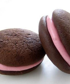 A gourmet whoopie pie filled with raspberry buttercream. Photo courtesy of Wanna Hava Cookie. Also see our review of Wicked Whoopie Pies.