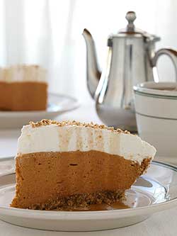Love that pumpkin pie, but find yourself too full at the end of a holiday meal to enjoy it? Lighten up—that is, lighten up the traditional recipe, and make this Pumpkin Chiffon Pie. The idea comes from Chef Gary Baca of Joe’s Seafood, Prime Steak and Stone Crab in Chicago, who wanted to offer a seasonal favorite different from the traditional pumpkin pie. Here, he whips the pumpkin mixture into a chiffon—a retro throwback to the 1950s and 1960s that is light and fluffy. Also take a look at Chef Baca’s Sweet Potato Pecan Pie With Jack Daniel’s.