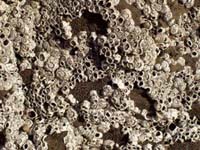 A crustacean that forms calcareous (containing calcium or limestone) shells. Barnacles attach themselves to submerged surfaces—both natural, such as rocks, whales and large fish, and man-made, such as ships, wharves and pilings. The two most important barnacles for for eating are the acorn barnacle and gooseneck barnacle, also known as the stalked or goose barnacle. This variety is particularly popular in Spanish, Portuguese and Moroccan coastal cuisines, where they are quite plentiful. An uncommon item in the U.S., the barnacle can be found in some specialty and online fish markets. It tends to be gritty and needs a thorough rinsing prior to a quick boiling or steaming, like mussels.