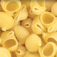 Lumaconi (loo-mah-COE-nee), also known as lumache were named for their resemblance to the shell of a snail (in Italian “lumaca”). They are giant, basket-shaped shells that are stuffed with cheese and vegetables. The shape is ideal for traditional baked pasta recipes, as a large amount of sauce can nestle inside of each shell.