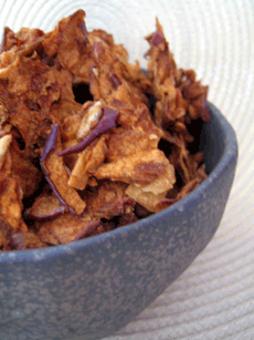 Like many specialty foods, Apple Crackle can be used to enhance other foods. We really enjoyed it sprinkled over yogurt, mixed into apple quick breads and on top of our morning bowl of oatmeal. The chips are small—the size of bran flakes—so you can sprinkle them as a tasty garnish on a variety of plates, from eggs and pancakes to tuna sandwiches to pork chops.