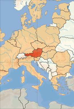 Map of Europe (Austria highlighted in red) courtesy of Wikipedia.com.