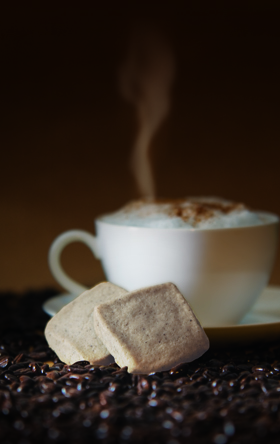 - Cappuccino Coffee Shortbread. Nonfat milk is added to the recipe to create that milky light cappuccino experience. The coffees are from Mexico and Peru. So nicely delicate, kids would enjoy these as well as adults.