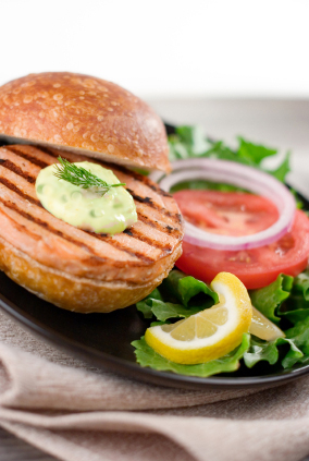 Drive a salmon burger wild with Lemonaise Green Dragon wasabi mayonnaise. Photo by Kelly Cline | IST. |