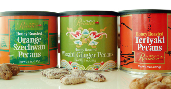 Marrying Eastern spices with Western crunch, this terrific-tasting trio of Chinese and Japanese spiced pecans begins with fresh pecan halves that are honey roasted. The three zesty spice blends are packed with personality: Orange Szechwan’s orange, cinnamon and honey flavors will appeal to anyone who loves Orange Beef, Orange Chicken, or just a beautifully flavored and versatile pecan. Wasabi Ginger will be the darling of wasabi lovers—the heat of horseradish is counter-balanced with the sweetness of the honey and the result is exciting. Teriyaki infuses true teriyaki flavor into the pecans: another spot-on recipe. Each flavor is so good, you must have all three, and offer all three to guests who—if they seek exciting new flavors—will be enthralled. Yet these plump, flavorful nuts are not just for cocktails and snacking. Since Chinese cuisine uses nuts in main dishes and desserts, we tried doing the same to great success:
