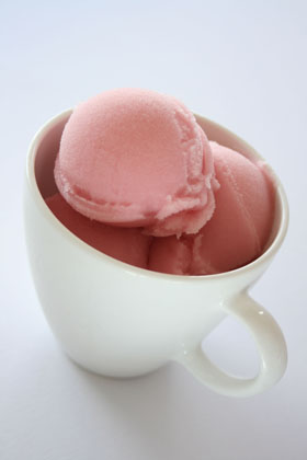 Strawberry Daiquiri Sorbet. Ripe strawberries dominate, with accents of lime. Dark rum and triple sec make this a (much lower-proof) frozen strawberry Daiquiri to cool you off poolside.