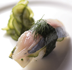 “Scandinavian sushi”: mackerel, dill and horseradish-infused pickles. |