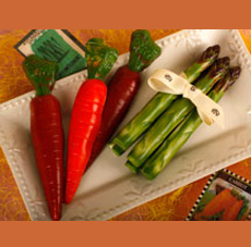What does a chocolate Easter bunny eat? Chocolate carrots, of course! Carrots—in dark, milk and white chocolate—and chocolate asparagus are the adorable chocolate vegetables made by Woodhouse Chocolate, a NIBBLE Top Pick Of The Week. No children—or adults—will refuse to eat these vegetables. Other Easter offerings from Woodhouse Chocolate include baby bunnies and ducks and Easter eggs filled with brown butter ganche, Mandarin orange and strawberry caramel, to name a few of the delicious flavors.