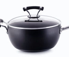 Circulon is the largest-selling single line of cookware in the world. This inexpensive covered saucier from the Contempo line is one of our favorite kitchen pieces. Just 1-1/2 quarts smaller than a stock pot, we use it for smaller servings of pasta, as well as soups, stews, and anything that requires a large saucepan. Nonstick inside and out, it distributes heat evenly and is easy to clean. It’s oven-safe to 400°F. The second handle on the pot makes maneuvering on the stove and in the sink easy. What’s extra-special are the silicone wrappings on the three steel handles—you never need a potholder. The long handle has a gold-out ring if you want to hang the pot.
