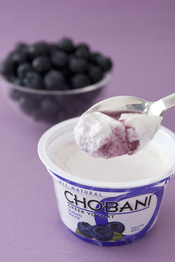 Probiotics with panache: Here, we added fresh blueberries to Chobani’s blueberry yogurt (the Chobani fruit is on the bottom). Photo by Saidi Granados.
