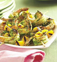 Mango, citrus and chimichurri sauce give grilled shrimp a fresh, bright flair. Photo courtesy J.M. Smucker Company.