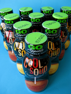CAPSULE REPORT: A new alternative for healthy eating on-the-go, Cool Soup makes soup “drinkable” from a bottle at room temperature or chilled. It’s a new way to eat fruit and vegetables without having to chop and cook. The portable plastic bottle has a nine-month shelf life. As a snack or meal replacement, it’s high in vitamins and antioxidants, low in calories and 100% natural.