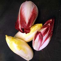 A small head of cream-colored bitter leaves that are grown in the absence of sunlight to prevent them from turning green and opening. They can be prepared in salads, stuffed, baked and are delicious cut in half and grilled.