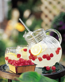 Toss cherries, blueberries or other fruit into your lemonade for added flavor and color. Photo courtesy Cherry Marketing Institute.