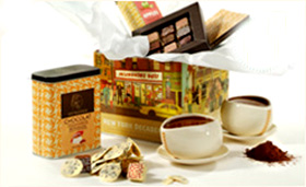 Then, discuss matters of state or no matters whatsoever, as you dip your pops into the melted milk chocolate and then into the afore-noted crunchy bits and crunchy waffle balls. The chocolate hardens, you take a bite—and it’s truly better than anything in this genre you can imagine (unless you yourself are a patissier). Max Brenner is a master of the conceptual chocolate experience. Every dish—from the Popsicle stand to the Hug Mug in the photo above, which is shaped so you can cradle your cocoa as you drink it, to the Kangaroo sipping vessel at the top of the page, to various other delights, is designed to package the chocolate as an experience. But the recipes are delicious as well—nothing over-the-top, over-sweet, or overdone. |