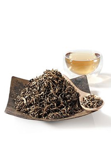 One of the best-known Chinese teas, jasmine can be a black, green, oolong or white tea scented with jasmine flowers. It is typically made with a base of pouchong tea. Jasmine tea is a specialty of Fu Zhou in Fujian Province, where it is scented five times between April and June with fresh jasmine blossoms—a fashion developed during the Ming Dynasty. This method instills the green leaves with attar of jasmine. Jasmine flowers are picked early in the day and mixed in with the tea at night, when they open and release their scent. The scent is infused into the leaves, which are steamed in order to hold scent well. In a top-grade tea, 20 pounds of blossoms are used to scent one pound of tea. Afterwards, the tea is crafted in many different shapes, but the pearl, shown at right, is one of the most popular.