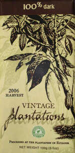 Plantations’ chocolate is produced from Arriba Nacional* cacao, grown solely in Ecuador. Both vanilla and lecithin are excluded from the chocolate in order to present the cacao in the most unadulterated, “natural” form. Arriba has a naturally lower fat content than other flavor cacaos. As a result, it produces a slightly drier texture in the finished bar. To combat this, most manufacturers add extra cocoa butter, but in so doing, they usually reduce the chocolate’s intensity. The tone is almost as dark as one will encounter, with an intense, bold and hearty flair. The flavor is usually quite predictable but can vary according to roast, since shorter roasts leave the more delicate notes intact. In general, expect to find flavors of flowers, red fruits, berries, spice, coffee, cocoa and nuts. Only the 100% and 90% bars are produced without the addition of extra cocoa butter. The rest of the bars have only a slight amount added for smoothness.