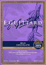 To honor Guittard’s founding father, Etienne, the company launched the E. Guittard line, which celebrates the traditional French methods and original formulas on which the business was established (the label proudly proclaims, “vintage chocolate making in the French tradition.” After five years of extensive tasting and research, the first chocolates of the E. Guittard line was introduced in May 2001, with further additions in the following years. Chocolate in this line comes in various types and sizes, ranging from 2oz. bars to 1lb. boxes of chips to 2.2lb. couverture blocs. Some of these offerings are available for retail sale in the form of 2oz. bars, while others are sold in larger quantities for confectionary applications.