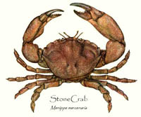 A very popular crab from the American south, its name comes from its stone-like, oval shell. Only the claws are eaten, and they are harvested by simply twisting off one claw and releasing the crab to grow a new one. This re-growth can take 1 or 2 years. The female crabs are not allowed to be de-clawed. In Florida, where most Stone crabs are harvested, the season runs from October 15th to May 15th. The claws are sold precooked and frozen to prevent the meat from sticking to the shell. It’s sold by size, with Jumbo being the largest typically available—around 1/3 of a pound a claw. It’s traditionally served cooked, chilled, cracked and with mustard sauce.
