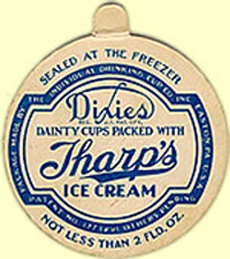 - Dr. Bruce Tharp, whose family produced Tharp’s Ice Cream in Shamokin, Pennsylvania, and was one of the early companies involved with Dixie Cup packaging, recalls that various combinations of the initial series of circus lids could be redeemed for six premiums that assembled into a “circus” that was punched out from a heavy colored cardboard sheet and assembled into a big top, side tents and performers. Dixie supported the program by featuring it on a network radio program. Its objective, of course, was to encourage ice cream manufacturers to use the Dixie cup packaging for their products, thus benefiting from the strong marketing of the concept by the company.