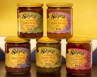 There are three different lines of salsa. Our favorite is the Salpica line of Mexican-inspired salsas, which adds an extra dimension by fire-roasting the ingredients—fresh tomatoes, onions, garlic and chiles. The flavors are crisp, bold, and distinctive without ever succumbing to a generic salsa profile or a blanket of impenetrable chile. Mexican flavors.
