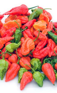 Naga jolokia, currently the world’s hottest chile, shown at different stages of ripeness. Photo by Xaime Méndez | Wikimedia. |