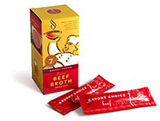 And, they’ve put their broth concentrates in handy foil packages you can convert to broth in an instant. From beef gravy to risotto, incredibly flavorful, restaurant-quality results are in store when Savory Choice concentrates are part of your pantry. These are the concentrates that good chefs use. The mahogany-colored paste for the chicken broth bears the distinct aroma of roast chicken and caramelized carrots, while the concentrate for beef stock has big, meaty flavor without the usual heavy dose of salt. The broths taste intensely like roasted chicken, turkey, or beef—in most broths, the foremost flavors are usually celery and other vegetables...and salt. There is no MSG, and no other additives. An introduction to Savory Choice will relegate any other commercial broth of your acquaintance to the “former acquaintance” list.