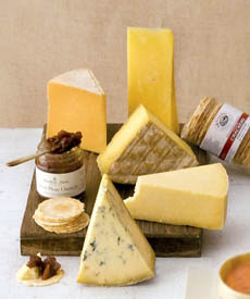 Let them eat cheese! Invite your friends over for a party that is sure to delight. You can build a cheese party around a theme, such as the British cheeses shown above, available as a gift collection at ArtisanalCheese.com.