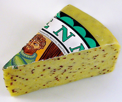 Red Dragon, called Y Fenni when covered in the traditional yellow wax, is flavored with mustard seeds.
